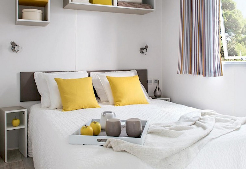 De CORDELIA is ons meest gevraagde type stacaravan en biedt alles voor een comfortabel verblijf onder de Franse zon. De caravan beschikt over 3 slaapkamers, wat natuurlijk prettig is als u met 5-6 personen bent maar wordt ook vaak geboekt door families met 4 personen zodat ieder kind dan zijn eigen slaapkamer heeft. Omdat de Cordelia standaard over airco beschikt slaapt u heerlijk in een aangename temperatuur.